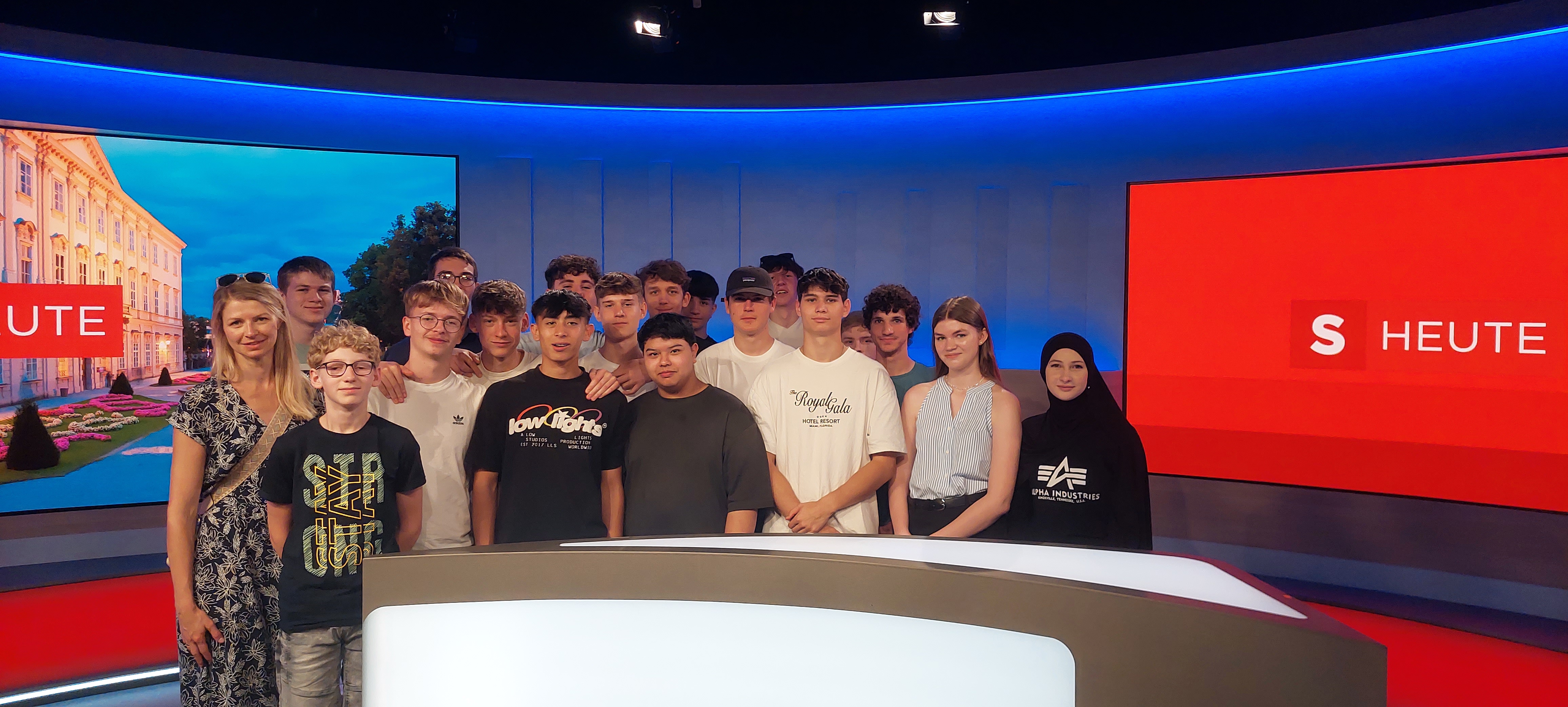 Die Schüler der 2AHETs im Fernsehstudio von Salzburg-Heute.