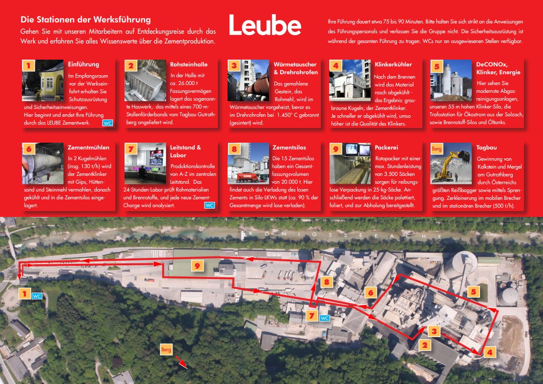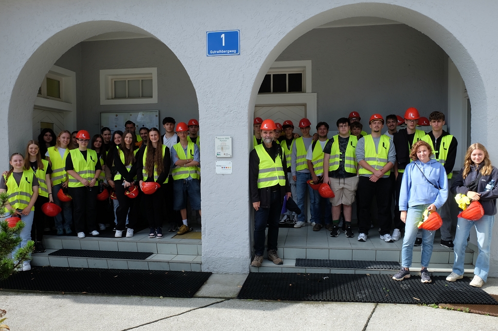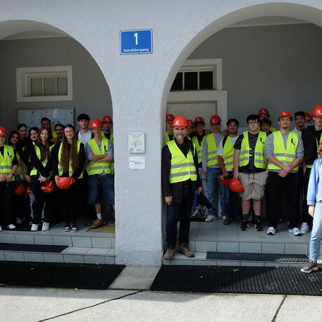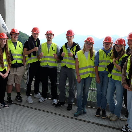 Die 3AHBTH und die 3BHBTT fuhren gemeinsam mit dem Bus zum Leube Zementwerk in St. Leonhard bei Grödig. Dort angekommen wurden alle, Schüler wie Lehrer, mit gelben Warnwesten, Schutzhelm und Schutzbrille ausgestattet.