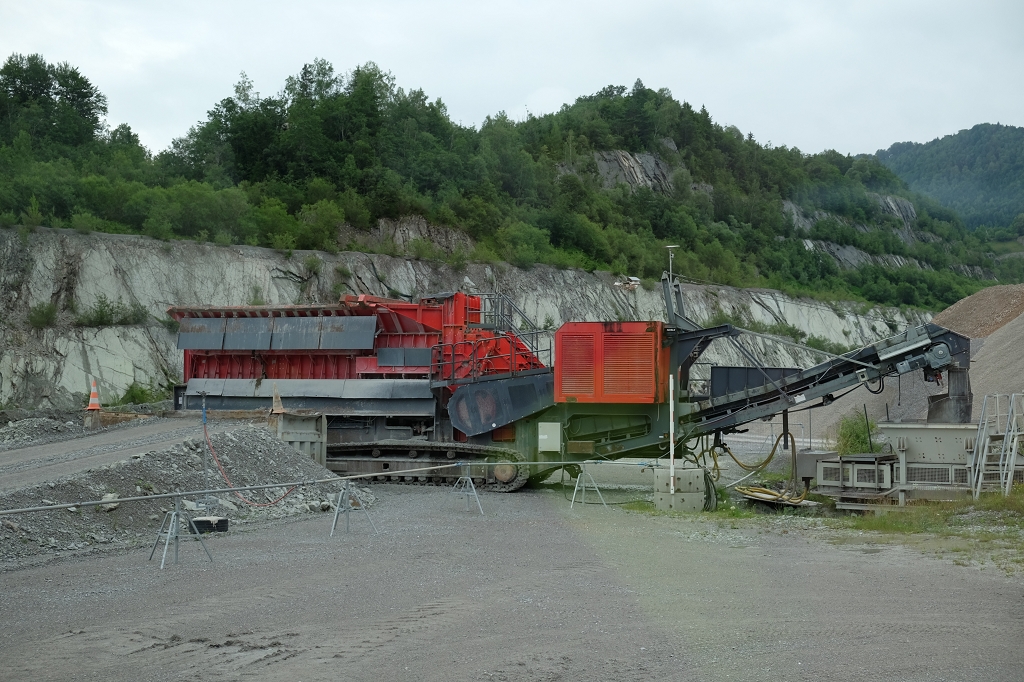 Danach ging es mit dem Bus hinauf zum Tagebau, wo der Mergel des Gutrathbergs abgebaut wird. Dort wurden uns verschiedene Stationen des Abbaus und der Verarbeitung gezeigt. Beeindruckend waren vor allem die riesigen Abbaumaschinen, Bagger und Steinbrecher. Zurück im Werk wurden uns die weiteren Verarbeitungsschritte nähergebracht.
