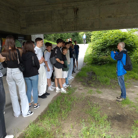 Nach dem Vortrag besichtigten wir gemeinsam mit unserer Jahrgangsvorständin Prof. Michaela Stöger BEd. MEd. und Prof. DI. Robert Gostner das Gelände, auf dem das Flusskraftwerk errichtet werden soll. Prof. DI. Gostner gab uns dabei erste Einblicke in den Wasserbau und erläuterte die praktischen Aspekte des Projekts.