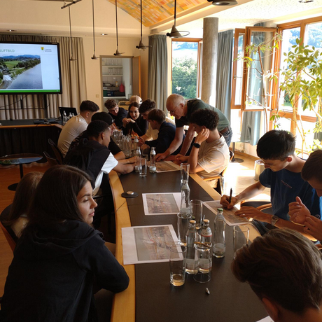 Die Schüler der 1BHBTT hatten im Anschluss die Möglichkeit, anhand eines Lageplans eigene Ideen zur Trockenlegung der Baugrube zu entwickeln und diese vorzustellen. Dabei zeigten sie ein beeindruckendes Verständnis für die Herausforderungen und präsentierten kreative und durchdachte Lösungsvorschläge.