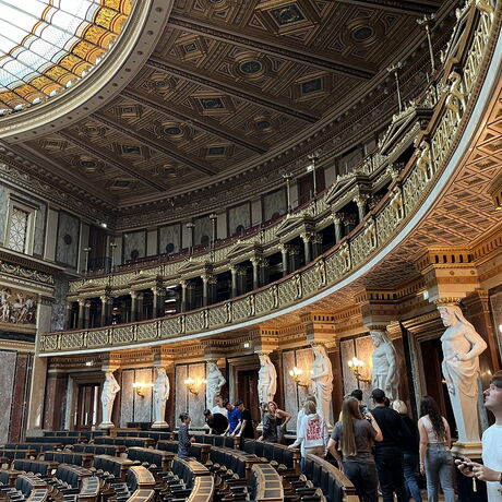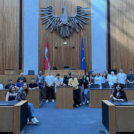 Die Klasse 3BHBTT fand sich am 2.7 um 7:30 Uhr am Hauptbahnhof in Salzburg ein, um mit dem Zug nach Wien zu reisen. Um halb elf kamen wir am Wiener Westbahnhof an und fuhren weiter zu unserer Jugendherberge "Brigittenau" im 20. Bezirk, um dort rasch unsere Zimmer zu beziehen und anschließend die Altstadt kennenzulernen. Im ersten Bezirk begutachteten wir den "Stefl"- also den Stephansdom. Hier gingen wir in kleinen Gruppen Mittag essen und danach gemeinsam zum Parlament. Am Weg bestaunten wir den Heldenplatz und das Natur- und Kunsthistorische Museum von außen. Im Parlament erhielten wir eine Führung, die wie im Flug verging. Wir durften uns viele Räumlichkeiten von innen anschauen. Die Funktionen der Räume wurden uns erklärt, wir lernten viel über unsere Gesetze und wie diese entstehen. Anschließend gönnten wir uns ein kleines Eis im Museumsquartier. Gemeinsam fuhren wir wieder in die Jugendherberge. Später gingen noch einige in Begleitung von unserem Klassenvorstand zum Public Viewing, um sich das EM-Spiel Österreich gegen Türkei anzusehen. Am Heimweg wurden das Spiel und der Tag noch intensiv nachbesprochen. Wir alle fielen vor Erschöpfung in unsere Betten.