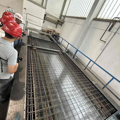 Um 9 Uhr starteten wir unseren Tag von der Jugendherberge Richtung Gerasdorf zum Fertigteilwerk Mischek. Dort angekommen, bekamen wir eine Einführung in die Geschichte und erhielten generelle Information über die Firma sowie deren Produkte. Anschließend wurden wir für eine Führung durch das Werk in drei Gruppen aufgeteilt. Es gibt 3 Produktionshallen für die Erstellung von Fertigteilwänden und -decken sowie anderer Bauteile. Die Arbeitsgänge Schalen, Bewehren und Betonieren erfolgen dabei weitgehend automatisiert. Für Sonderanfertigungen wie z.B. Liftschächte ist jedoch nach wie vor ein großer Anteil manueller Arbeit notwendig.