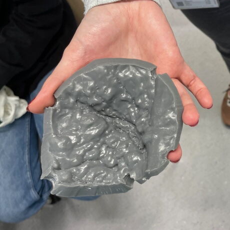 Spannend fanden wir auch die Entstehung von einem MRI- oder CT-Bildes bis hin zum 3D gedruckten Schädelplattenimplantates, das zum Beispiel als Ersatzknochen bei Schädelverletzungen Eingesetzt wird.