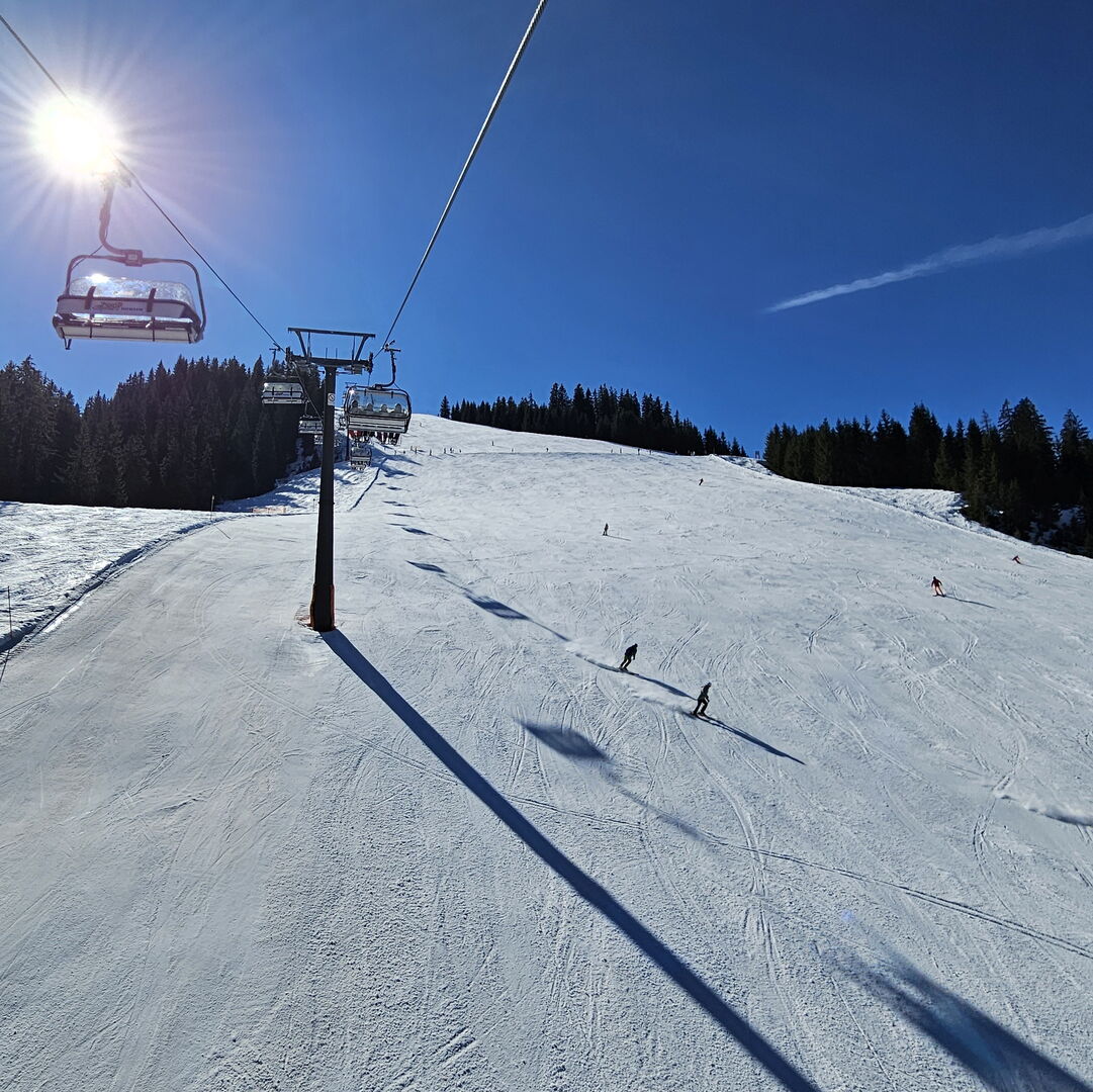 Um den gelungenen Skitag abzurunden, kehrten die Gruppen mittags in einer Hütte ein, wo sie sich ein leckeres Mittagessen mit Bergpanorama nicht entgehen ließen. Bei bester Stimmung und traumhaftem Panorama ging es anschließend nochmal gestärkt zurück auf die Pisten.