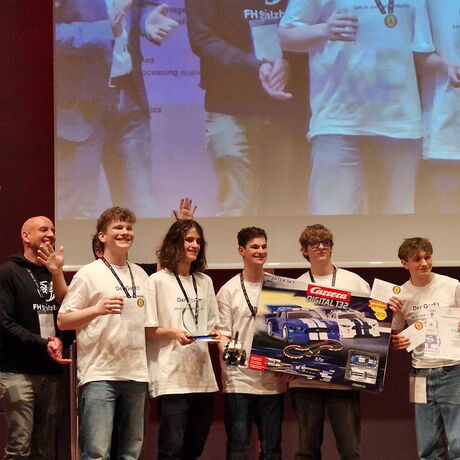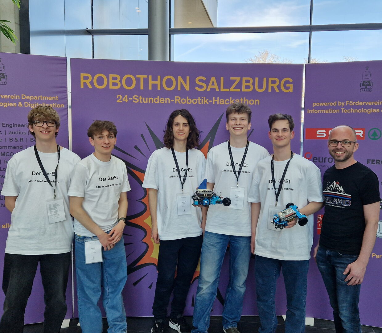 Fünf motivierte Schüler der 4BHEL haben die Osterferien kurzerhand verschoben, um am 24-Stunden-Robothon der FH Salzburg teilzunehmen. Ab Freitag Nachmittag hatten die teilnehmenden Teams exakt 24 Stunden Zeit, einen Roboter zu bauen und zu programmieren, der die gestellte Aufgabe autonom, also ohne Fernsteuerung lösen kann. Ziel war, eine durch Bodenmarkierungen festgelegte Rennstrecke zu bewältigen. Dabei musste der Roboter 3 Runden in möglichst kurzer Zeit schaffen. Eine besonders knifflige Herausforderung war, dass zwischendurch für 3 Sekunden ein Boxenstopp außerhalb der Strecke eingelegt werden musste. Anschließend musste der Roboter selbstständig wieder zurück auf die Strecke finden, um das Rennen zu beenden.