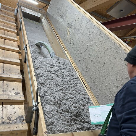 Die Firma Isocell ist marktführend im Bereich der Zellulose-Einblasdämmung und verwirklichte auf ihrem Firmengelände ein umfangreiches Angebot an Schaulagern, Ausstellungsflächen und Demonstrationsobjekten, die sie ausführenden Firmen zu Schulungszwecken zur Verfügung stellt. Das Einblasen der Dämmung in Steildachkonstruktionen wurde von erfahrenen Mitarbeitern in einem Musterhaus vorgezeigt. Ebenso wurde das Brandverhalten der Zellulose praktischerweise mit dem Flämmer als Versuch in Echtzeit vorgeführt.