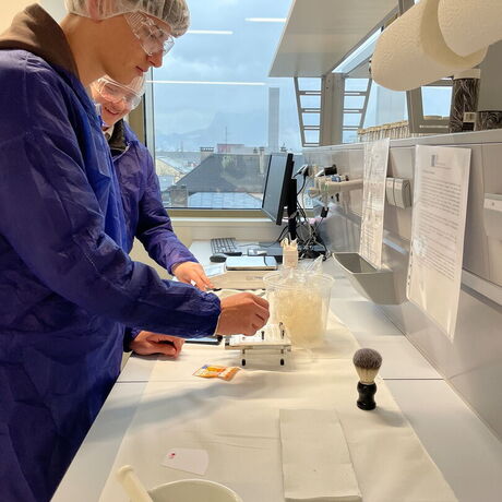 Abgerundet wurde der Vormittag durch eine Führung durch die hochtechnologischen Laborräume und Lehrsäle der Universität sowie einen praktischen Workshop. Dabei hatten die Schülerinnen und Schüler die Möglichkeit, selbstständig eine Handcreme herzustellen und pharmazeutische Kapseln zu produzieren.