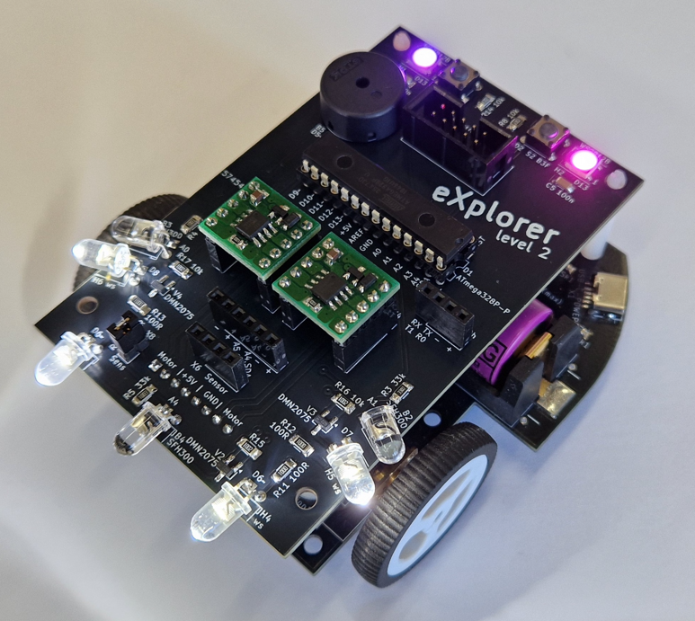 Ausgestattet mit einem Mikrocontroller, präzise abgestimmten Sensoren und einer intelligenten Motorsteuerung erreicht der eXplorer eine neue Stufe der Autonomie. Durch das Zusammenspiel von selbst programmierter Software und sorgfältig entwickelter Hardware kann das System viele Aufgaben komplett eigenständig und ohne externe Steuerung bewältigen.