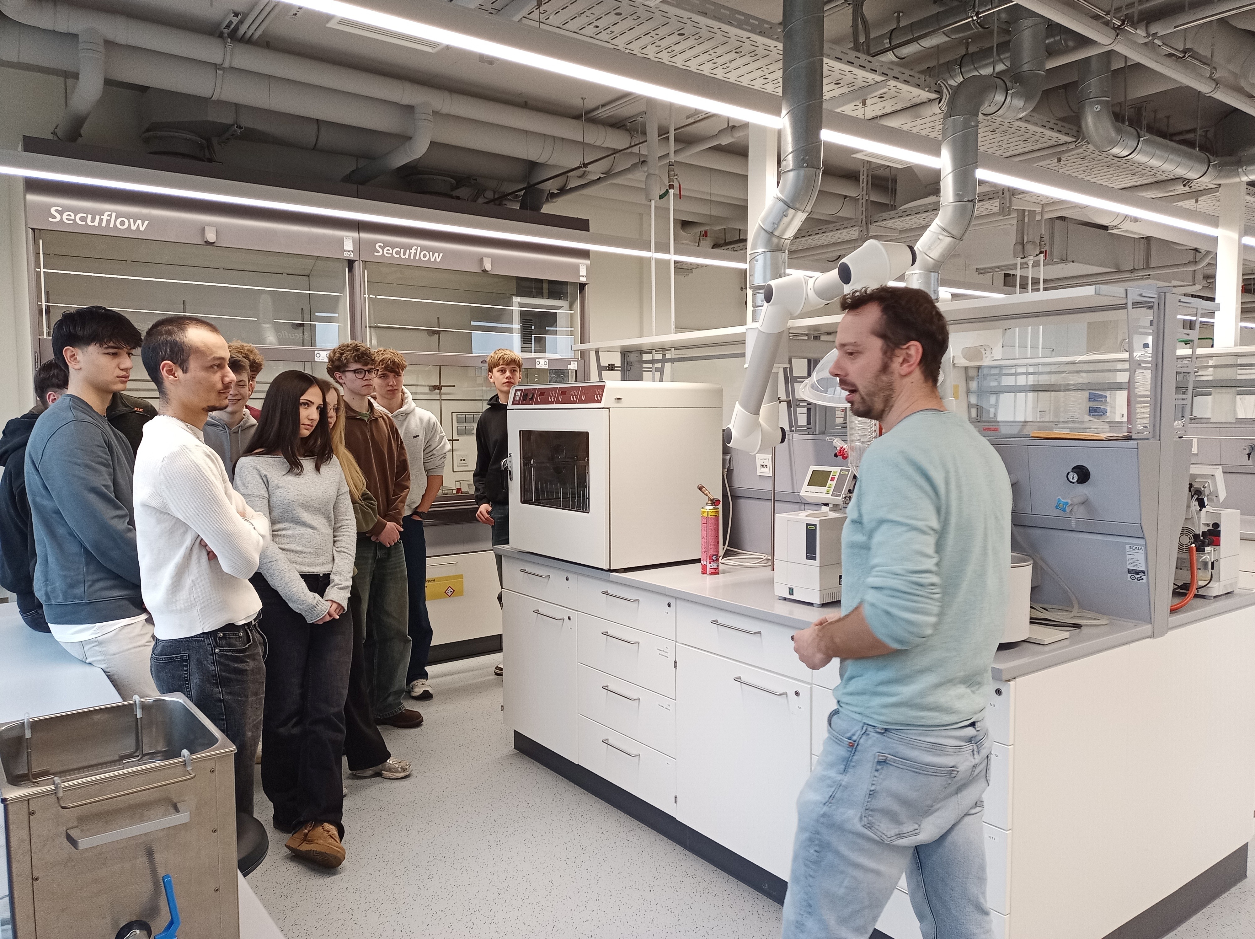 Im Anschluss wurden uns verschiedene Räume, Geräte und insbesondere das Labor gezeigt. Dabei konnten wir einen guten Einblick gewinnen, wie praxisnah das Studium aufgebaut ist und mit welchen Methoden im pharmazeutischen Bereich gearbeitet wird.