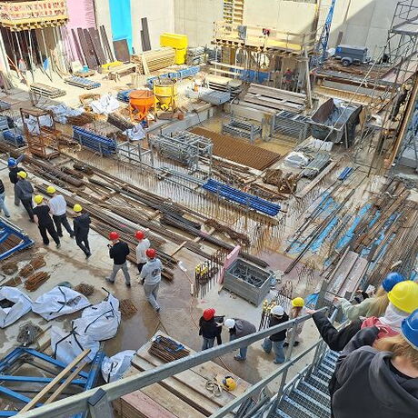 Die Schülerinnen und Schüler der 2C gewannen hier unmittelbare Einblicke in das Bauen im denkmalgeschützten Bestand, komplexe Umbaumaßnahmen, Bauarbeiten in Zusammenarbeit mit der Archäologie, den Spezialtiefbau, die weiße Wanne, den Sichtbeton mit speziellen Anforderungen sowie den organisatorischen Aufwand bei der Abwicklung eines derart komplexen Projekts.