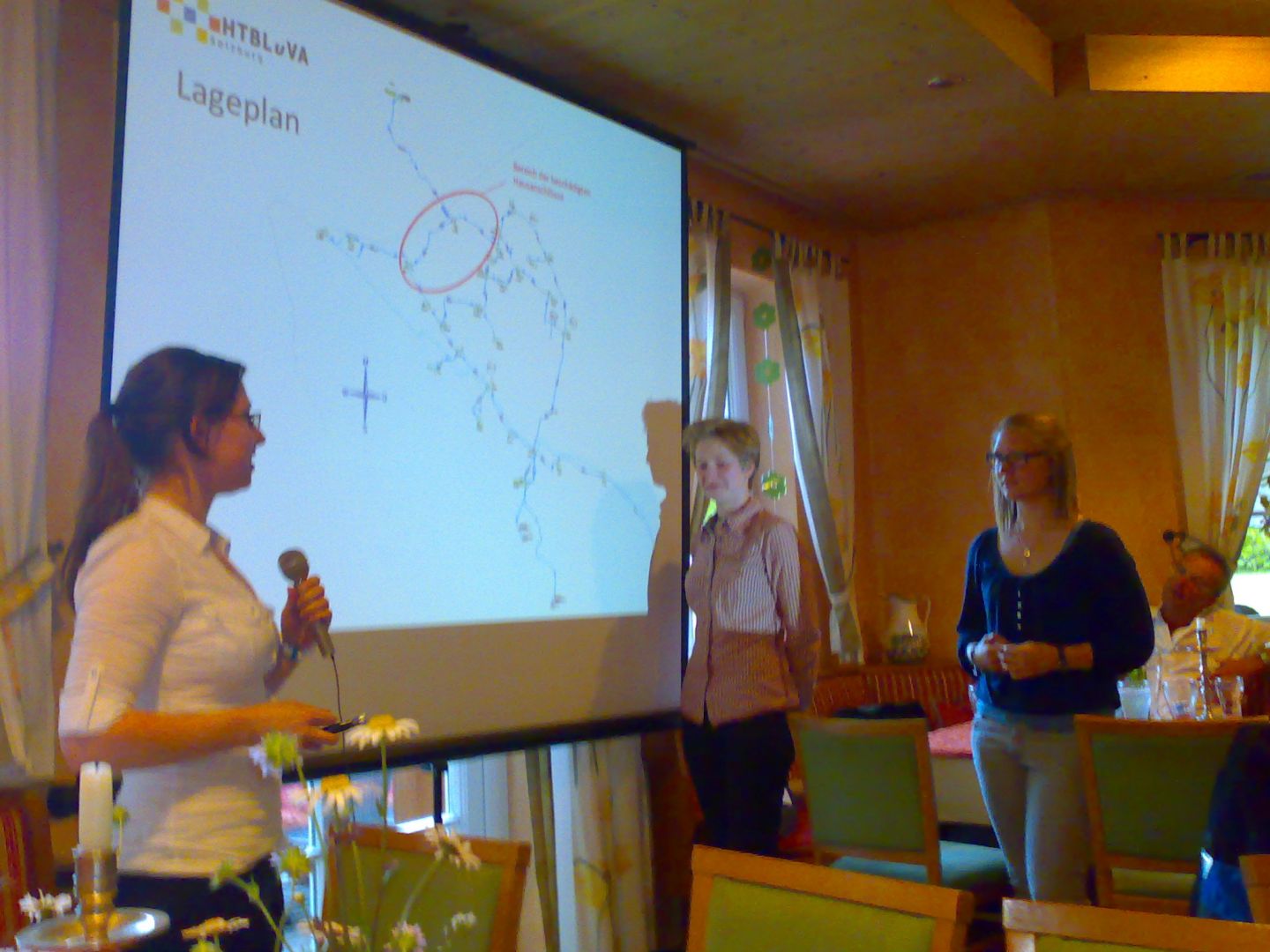 Nach der Fertigstellung des Projektes wurde die Arbeit im Ausschuss der Wassergenossenschaft vorgestellt und war die Arbeit der Vollversammlung der Wassergenossenschaft zu präsentieren. Spätestens zu dem Zeitpunkt, als in einem Gasthaus am Wolfgangsee den vier Bearbeiterinnen fünfzig bodenständige AberseerInnen gegenüber saßen, machte sich eine leichte Nervosität bemerkbar. Doch auf Grund der sehr guten Vorbereitung der vier Projektantinnen erfolgte die Präsentation des Projektes einschließlich der Wirtschaftlichkeitsberechnung für die Turbine reibungslos und prägnant und wurde auch von den versammelten Mitgliedern mit einem aufrichtigen Applaus honoriert.