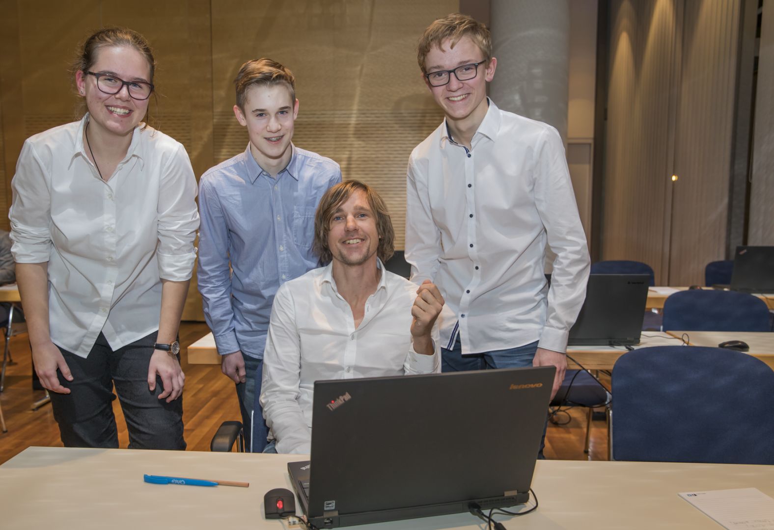 Mit Unterstützung von drei Referenten, Eva Barbeck (2AHBG), Philipp Humer (2BHEL) und Christoph Schweighofer (2BHEL), wurden Firmenleiter und Firmenangestellten die Grundsätze der Programmiersprache "Java" näher gebracht. Zur gelungenen Veranstaltung dürfen wir Herrn Dipl.-Ing. Mag. Dr. Arthur Schuchter sehr herzlich gratulieren.