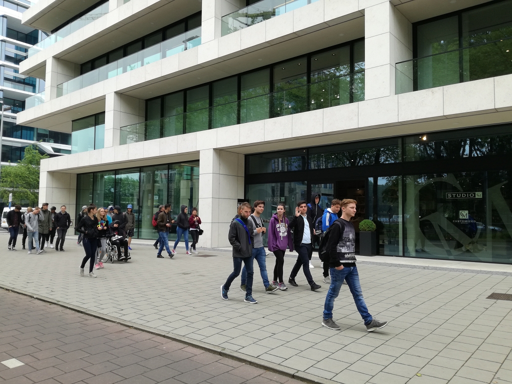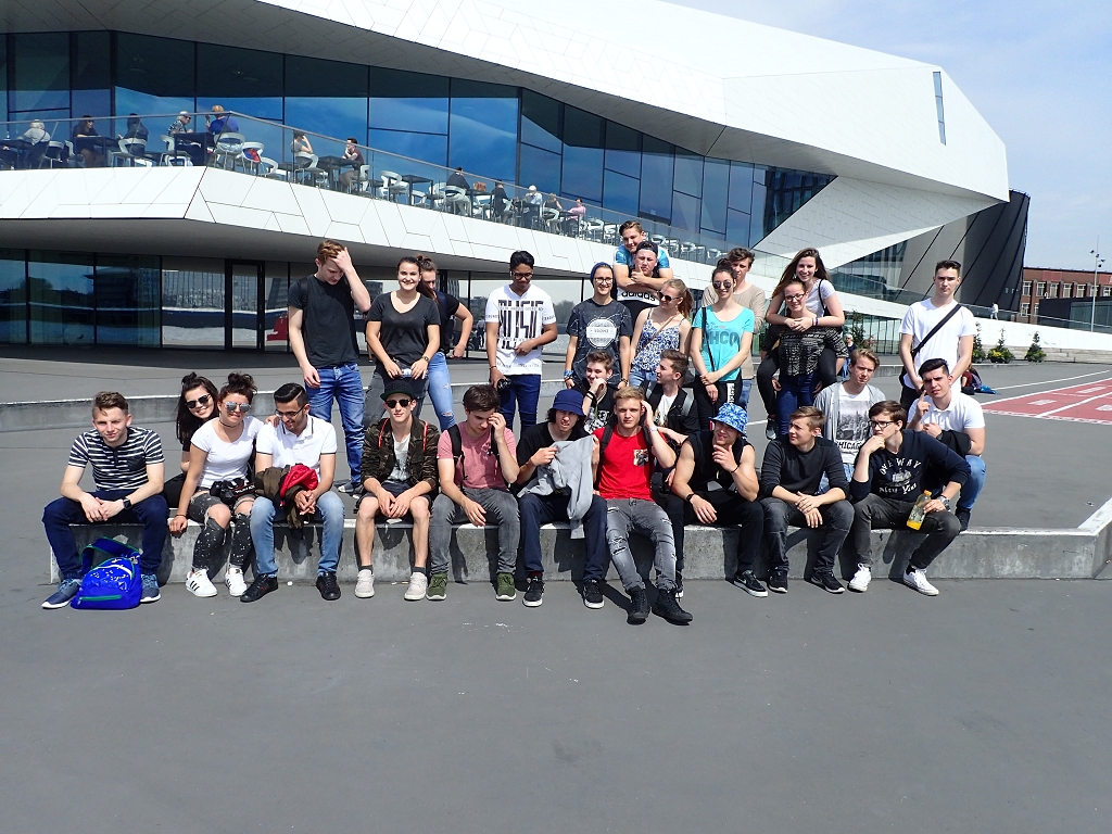 Dienstag: Unser erster Programmpunkt war das Rijksmuseum. Neben der Besichtigung des Museums hatten wir die Aufgabe besondere Bilder von zwei Künstlern zu finden und zu beschreiben. Nach der Mittagspause ging es mit der Fähre gleich weiter zum EYE Filmmuseum, in dem wir eine ausführliche Führung absolvierten. Das nächste Ziel war ein Büro- und Wohnbau, genannt Patch 22, welcher komplett aus Holz errichtet wurde.