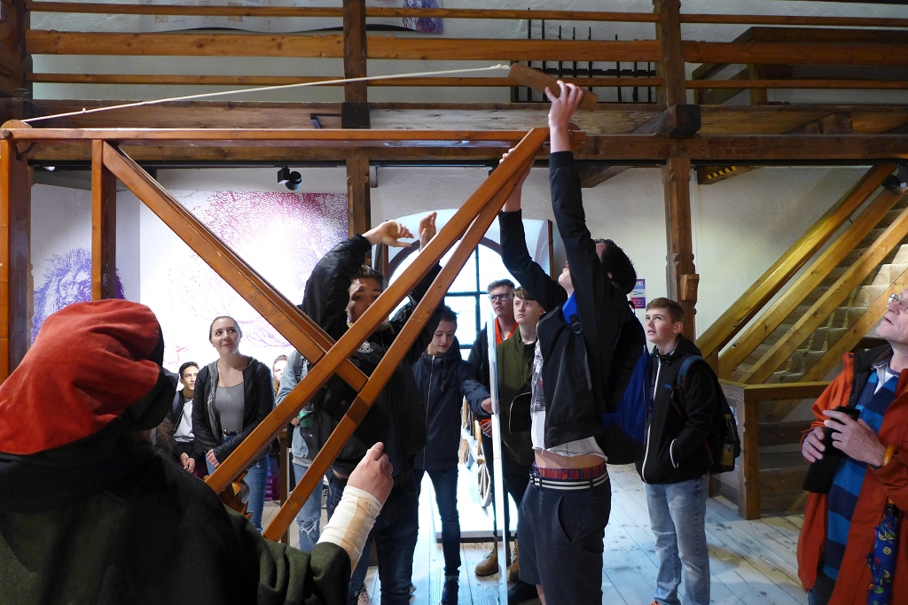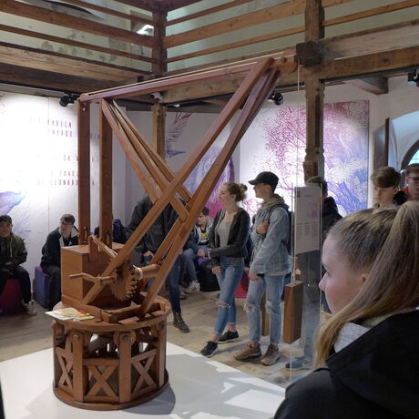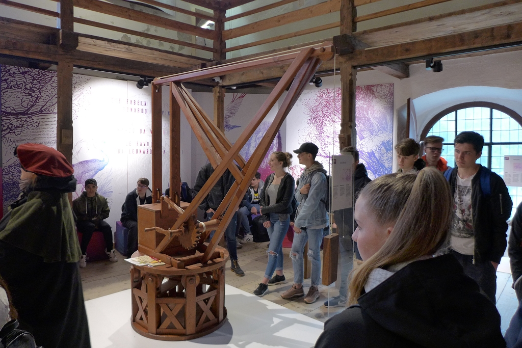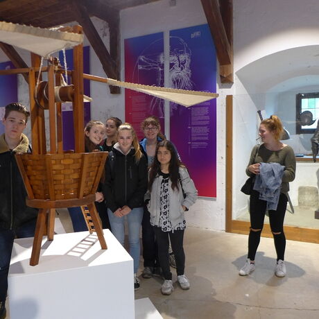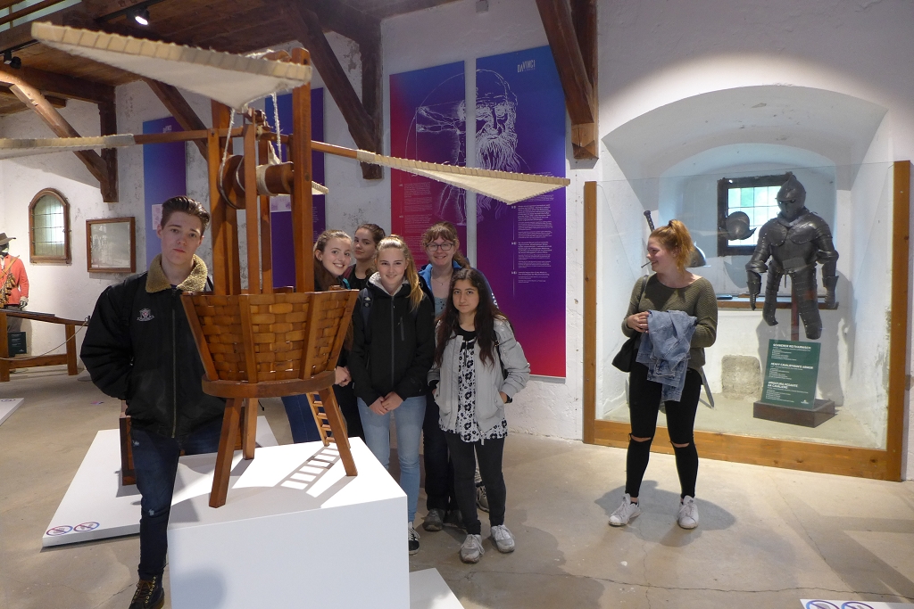 Die SchülerInnen nahmen an einer Führung zum Thema Leonardo da Vinci teil. Es ist wirklich interessant und bewundernswert, wie weit er, vor allem bei seinen Flugapparaten, seiner damaligen Zeit voraus war. Die Flugapparate konnten aufgrund unzureichender Antriebsmöglichkeiten nicht realisiert werden, aber da Vinci konstruierte unter anderem ein Hammerwerk, das den Schmieden zur Arbeitserleichterung diente.