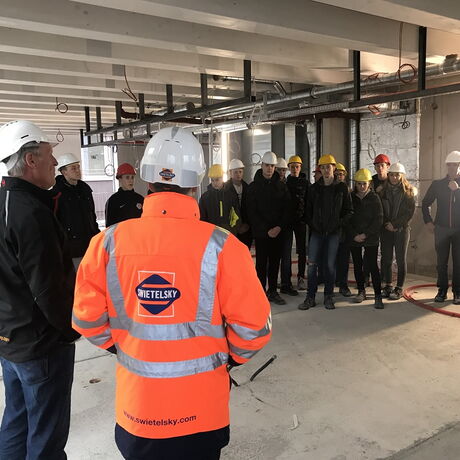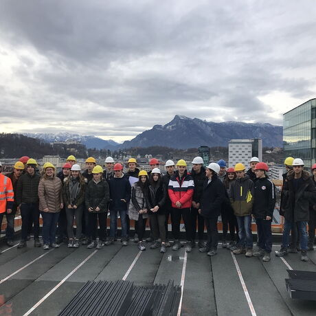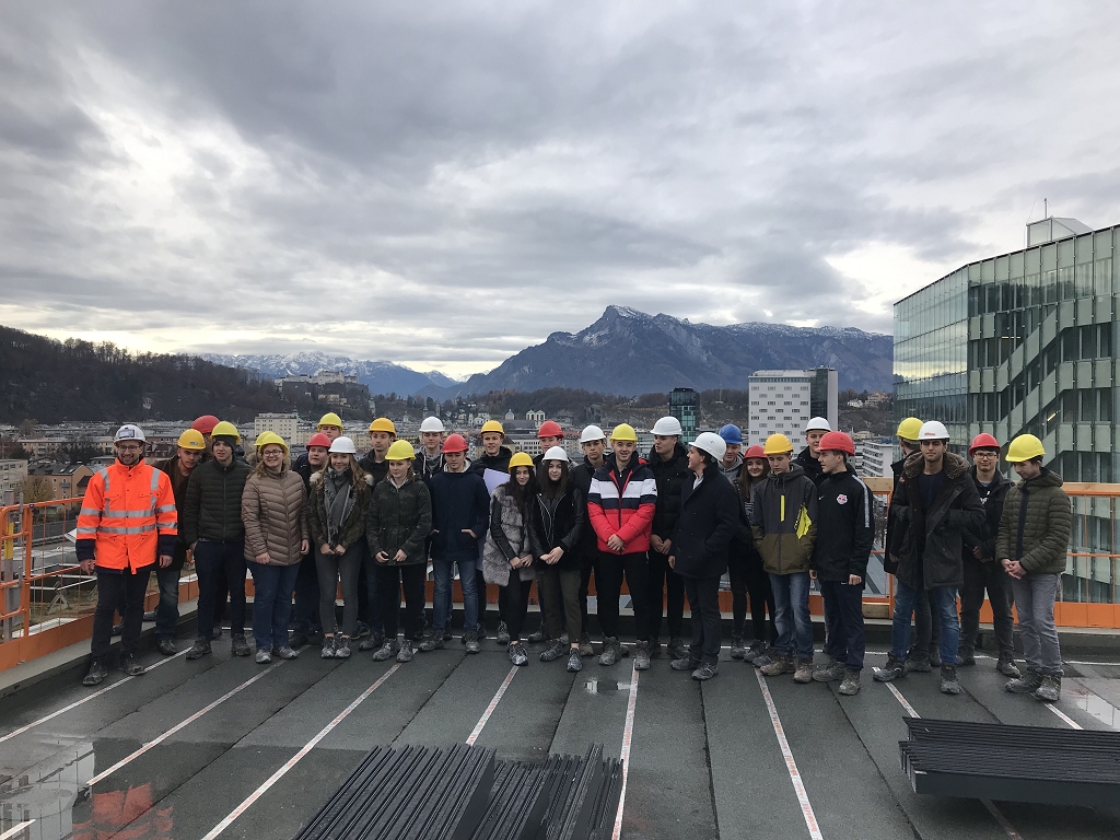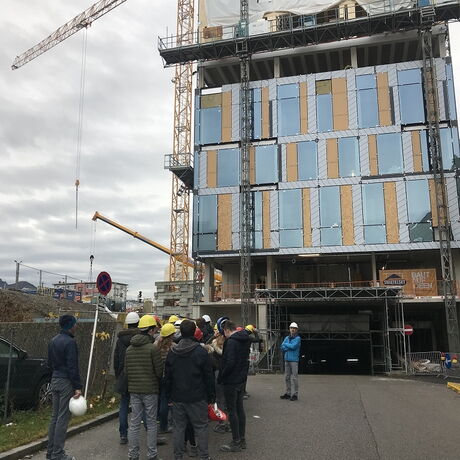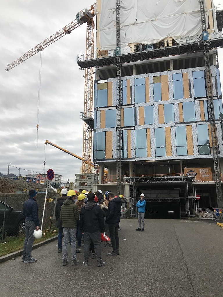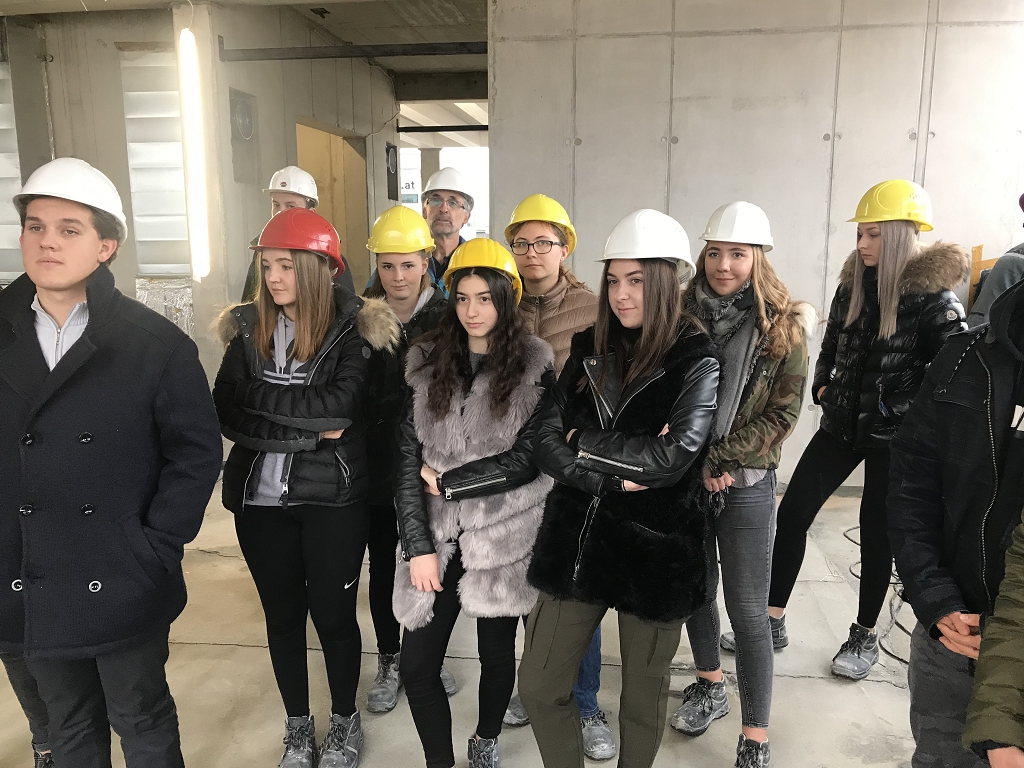 Die Schülerinnen und Schüler der 3AHBTH und der 3BHBTT hatten im Zuge dieser Baustellenbesichtigung die Gelegenheit, Einblicke in den aktuellen Baufortschritt sowie in die verschiedenen technischen Details dieser Bauweise zu gewinnen.