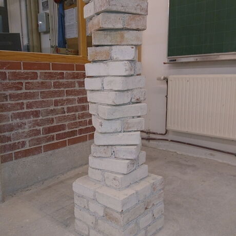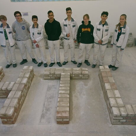 Im Unterrichtsfach „Baupraxis und Produktionstechnik (BPPT)“ lernen die Schülerinnen und Schüler des 1. Jahrganges die für das Mauern erforderlichen Werkzeuge, Hilfsmittel und Materialien kennen. Der Unterricht in den einzelnen Werkstätten umfasst 5 - 6 Unterrichtstage mit je 7 Unterrichtseinheiten. In dieser Zeit werden die für das Mauern erforderlichen Verbandsregeln für Mauerwerke aus Normal-Format-Steinen sowie die verschiedenen Arbeitstechniken für die Herstellung eines soliden Mauerwerks aus NF-Ziegeln vermittelt.
