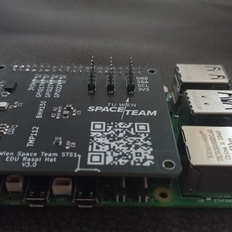 - Bild 5: Abgebildet ist ein Raspberry Pi inkl. dem aufgesteckten Original-HAT des TU-Wien Space Teams.