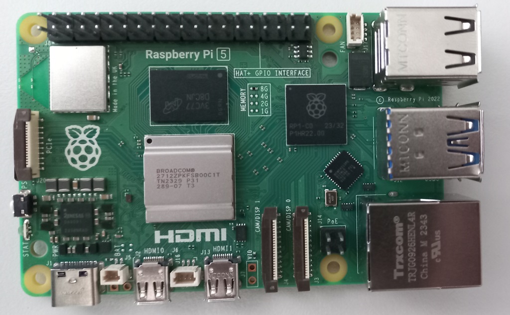 - Bild 1: Zu sehen ist einer der verwendeten Rapberry Pi 5.