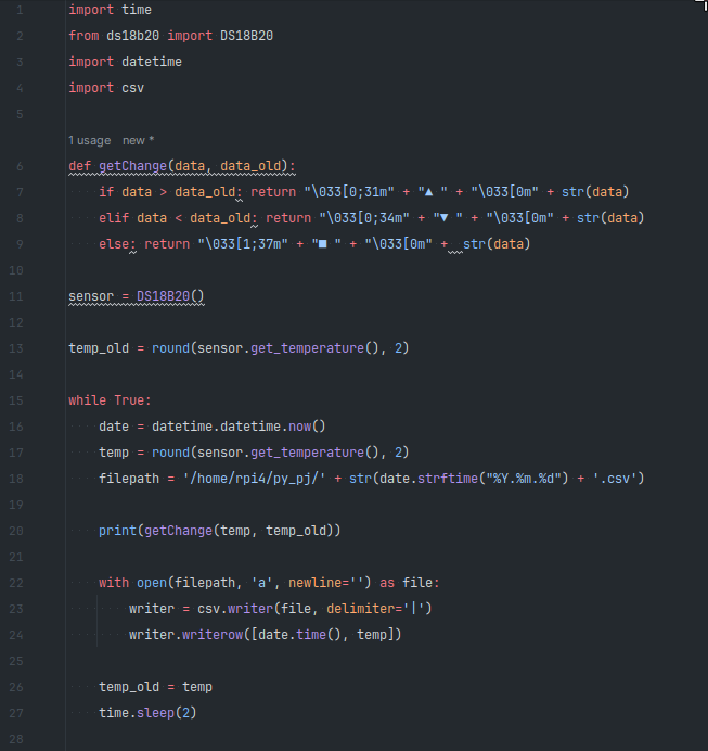 - Bild 2: Dargestellt ist ein Teil des zum Meilenstein 3 gehörigen Quellcodes zum Auslesen der Daten des Temperatursensors DS18B20.