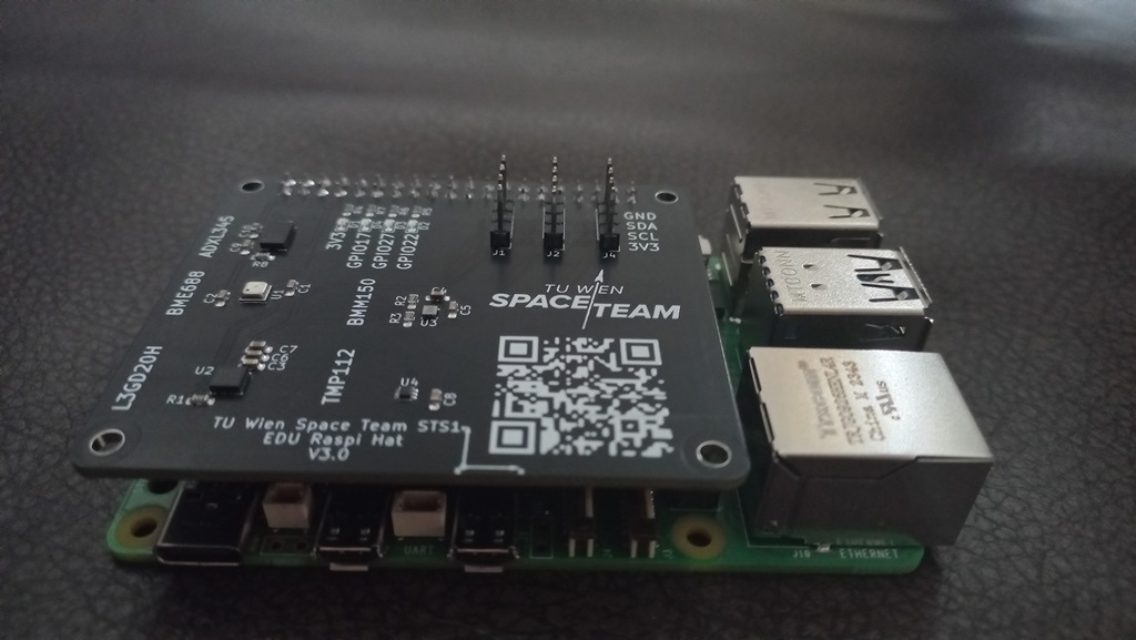 Danach konzentrieren wir uns auf die Hardware der "Educational CubeSat Mission". Hinter den Kulissen wird mit Hochdruck am sogenannten HAT, einer auf den Raspberry Pi aufsteckbaren Platine mit den Sensoren, gearbeitet. Damit kann am eigenen Raspberry Pi Software entwickelt werden die später praktisch ohne Änderungen am CubeSat läuft.