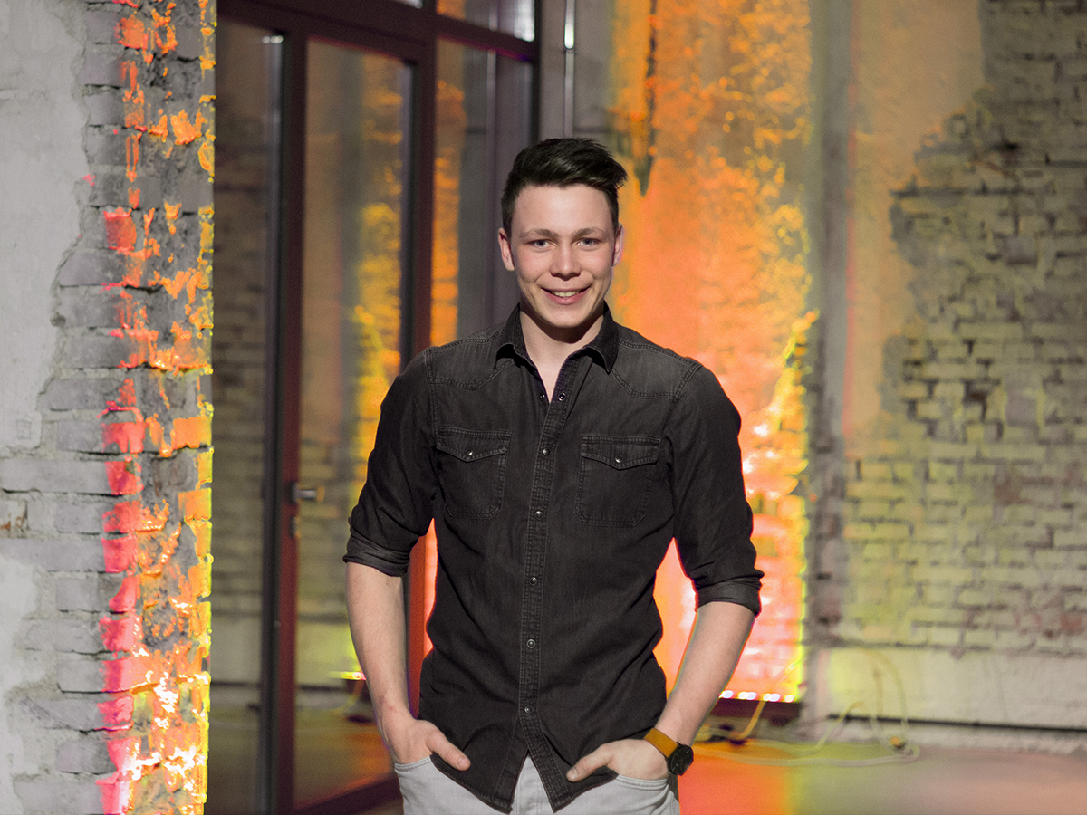Ein Maschinenbau-Absolvent, zwei Grafik & Medien Schülerinnen und eine Marke