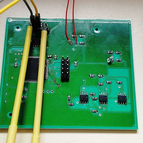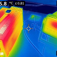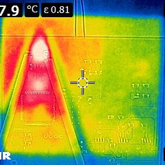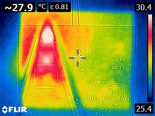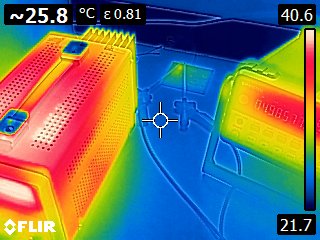 Diese Bilder wurden im Zuge des ersten Dauertests mit dem Smartphone bzw. der Wärmebildkamera erstellt. Den Gesprächen der beiden Entwickler zu folgen ist nicht ganz leicht. Da fallen Begriffe wie ADC, analog Input, ATmega128, Atmel Studio, AVR Dragon, C/C++, Eclipse, Datenbank, Datensicherheit, digital Input, EEPROM, Interrupt, Java, JTAG, Keramikplatine, MySQL, OPV, Protokoll, Quarz, Ringspeicher, RS-485, serielle Schnittstelle, Übertragungsfehler, u.v.m.