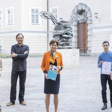 Im Bild die Übergabe eines Schildes von Bundesrats-Präsidentin Dr. Andrea Eder-Gitschthaler an Bundesminister Dr. Heinz Faßmann.