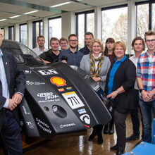Maximilian Sams, Alexander Kranzinger und Sabrina Reiter führten gemeinsam mit ihrem Projektbetreuer DI Richard Grutschnig ein vertikalverteilendes Förderband vor. Die Bosch-Delegation war begeistert: Angelika Kiessling, Leiterin Unternehmenskommunikation Bosch Österreich (3 v. l.), Peter Wörz, Techn. Leiter Bosch-Werk Hallein (3. V. r.) und Sabine Landstorfer, Personalreferentin Bosch Hallein (2. v. r). Foto: BOSCH
